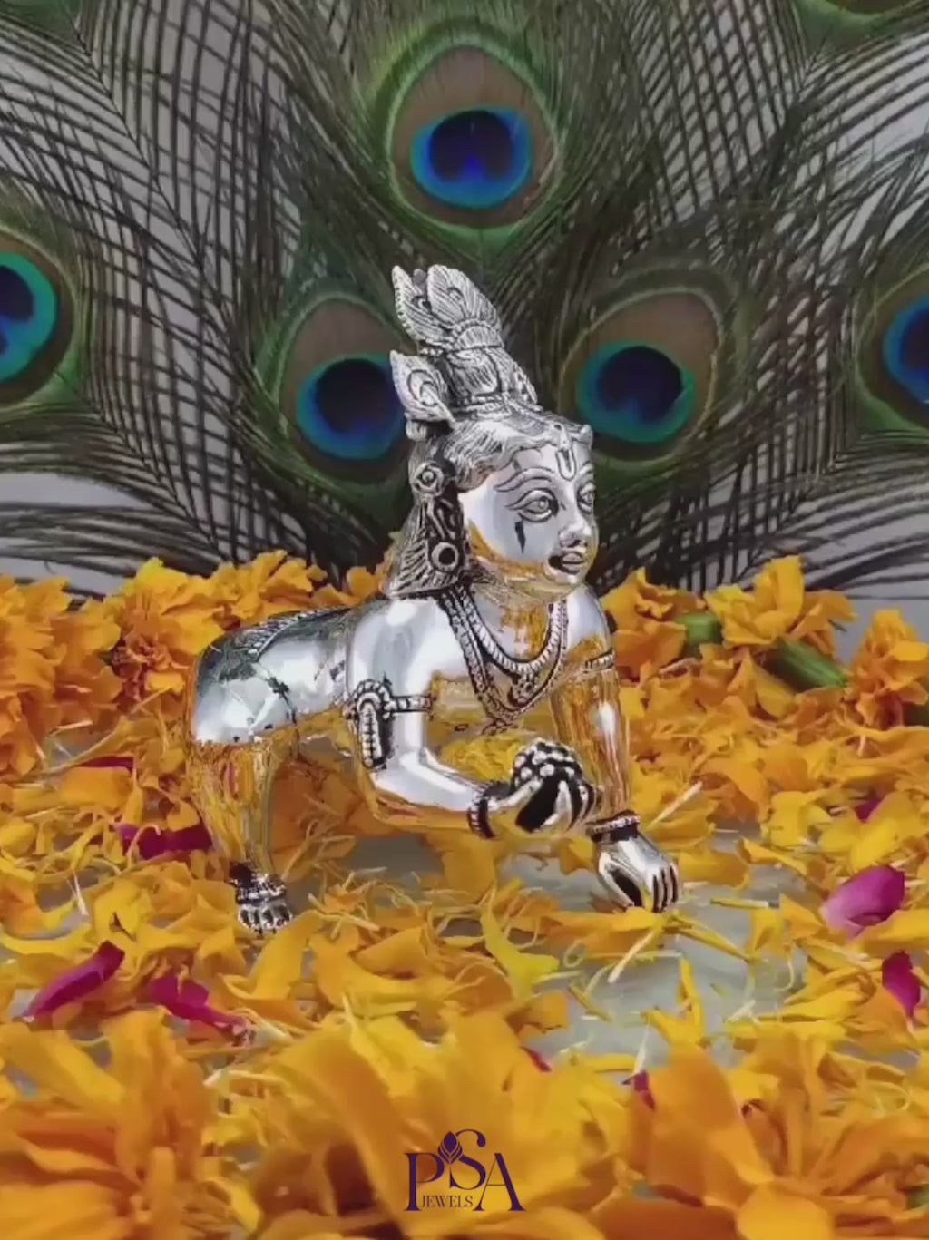 "Embrace the divine innocence and playful charm of Lord Krishna as Bal Gopal with our Pure Silver Bal Gopal Krishna Idol. Capturing the essence of Krishna's childhood antics and divine grace, this exquisite masterpiece radiates joy, love, and spiritual fulfillment. Crafted with intricate detail and sterling silver craftsmanship, the idol embodies the sweetness of Krishna's presence. Invite the auspicious blessings of Bal Gopal into your home and experience a sense of divine love and protection. Embrace the divine essence of Krishna's childhood form with this timeless masterpiece, elevating your spiritual journey to new heights."