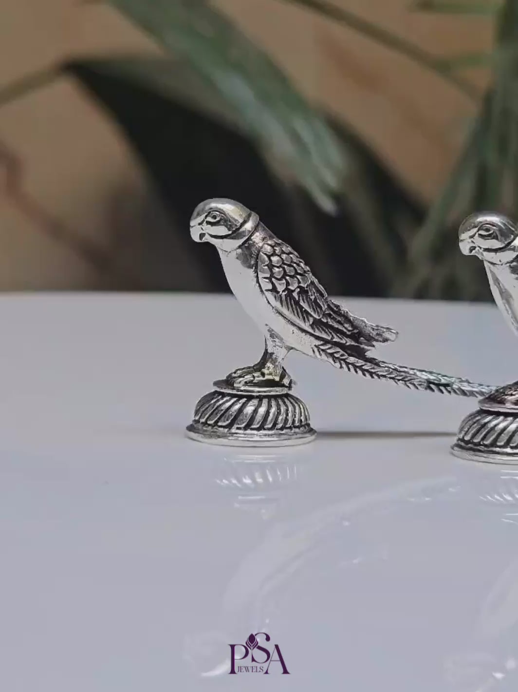 Pure Silver Pair Of Parrot Idol