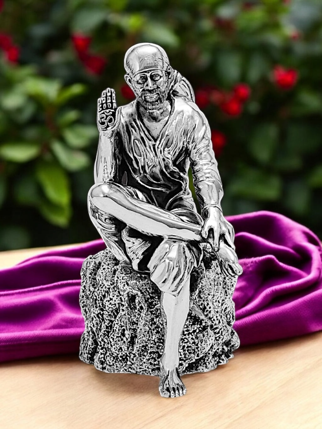 "Experience the divine presence and benevolent grace of Sai Baba with our Pure Silver Sai Baba Idol. Revered as the embodiment of love, compassion, and spiritual wisdom, Sai Baba's teachings transcend barriers of religion and culture. Crafted with meticulous detail and sterling silver craftsmanship, this exquisite idol captures the serene countenance and divine aura of Sai Baba. Invite the auspicious blessings of Sai Baba into your home and experience a sense of inner peace, harmony, and spiritual fulfillment. Embrace the divine essence of Sai Baba's teachings with this timeless masterpiece, elevating your spiritual journey to new heights."